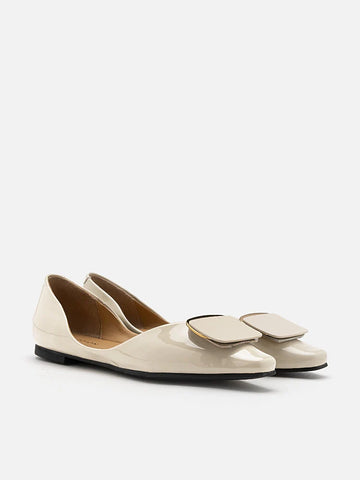 As minimalist silhouettes and practical tailoring continue to trend in the fashion landscape, elegance takes on a new perspective. Desiree Buckled Patent Covered Flats effortlessly embodies this chic style, its colour palette perfectly harmonising with the subtle gold accents. More urban and edgy than traditionally sweet, Desiree's look has become a favourite among city women, paired with vibrant outfits to create a captivating contrast that epitomises the energy and confidence of the era.