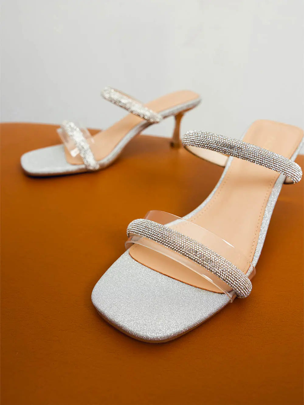 What makes the micro fashion trend so irresistible is its versatility. Whether you're dressing up for a night out on the town or keeping it casual for a daytime rendezvous, micro accessories and heels effortlessly elevate any look. The allure of these Sybil Crystal Embellished Heels lies in their adaptability. Offering a refreshing alternative to towering stilettos or chunky platforms, these petite heels effortlessly complement both relaxed and formal attire. With double straps adorned with tasteful crystal embellishments, they bring a touch of glamour to any ensemble.The rubber outsole guarantees a steady footing, striking the perfect balance between style and comfort, glistening through your night out with unparalleled sophistication. Whether paired with a tailored suit or a flowy dress, they draw attention to your steps and elevate any outfit with a touch of refinement without sacrificing comfort.