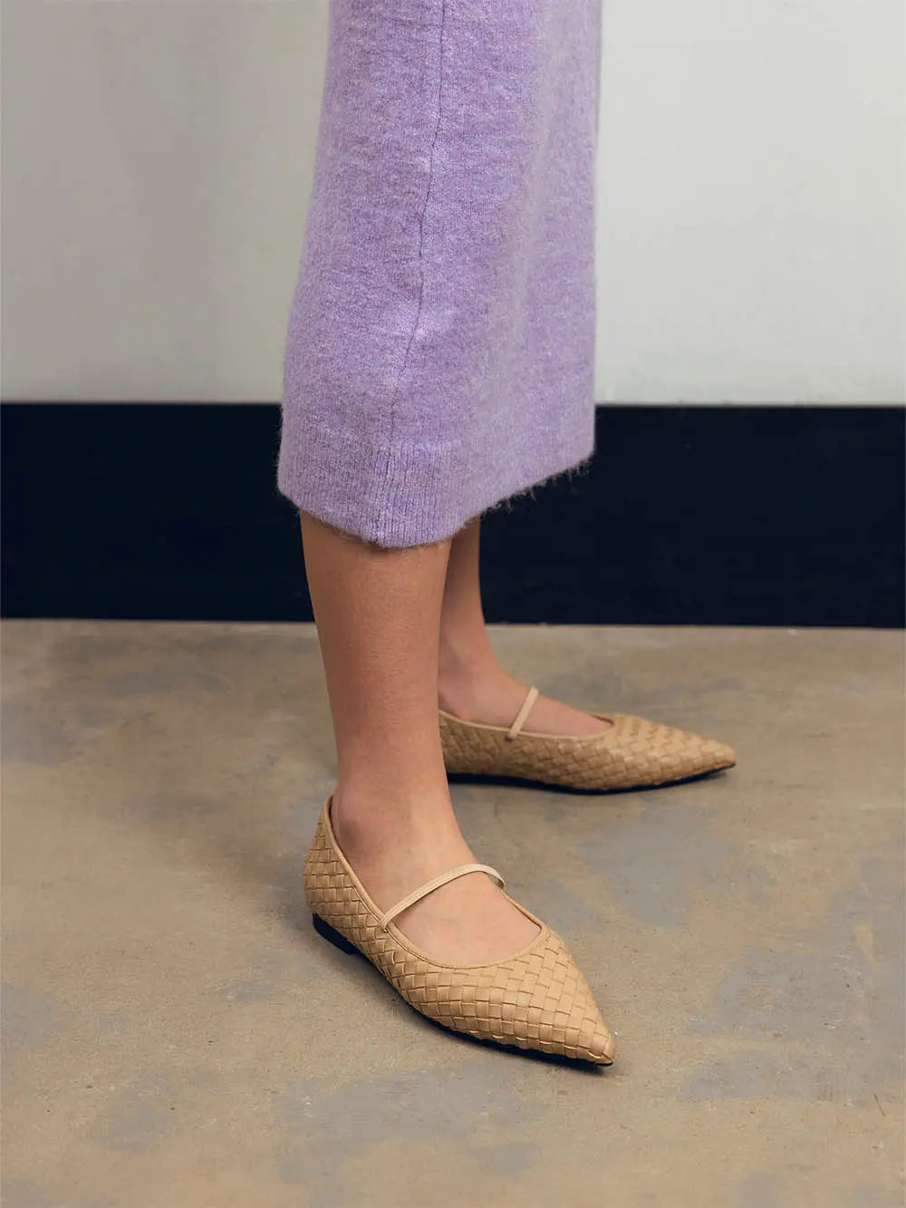 Marcella Braided Pointed Toe Flats embodies the essence of contemporary elegance, seamlessly blending style and comfort for the modern woman's dynamic lifestyle.Crafted from intricately braided leather strips, each pair is meticulously woven using a specialised technique, resulting in a unique and sophisticated finish. The braided leather construction not only adds visual interest but also provides flexibility and support with every step. The soft leather moulds to the contours of your feet, ensuring a snug and comfortable fit that feels like a second skin. Plus, the durable sole offers traction and stability, making Marcella the perfect choice for all-day wear.