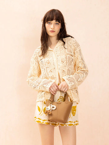 PRODUCT DESCRIPTION This exquisite piece showcases an intricate woven pattern, exuding timeless sophistication and texture. The standout feature? A twist-lock handle design that not only adds a chic touch but also unlocks for seamless access to the secure zip closure....