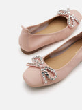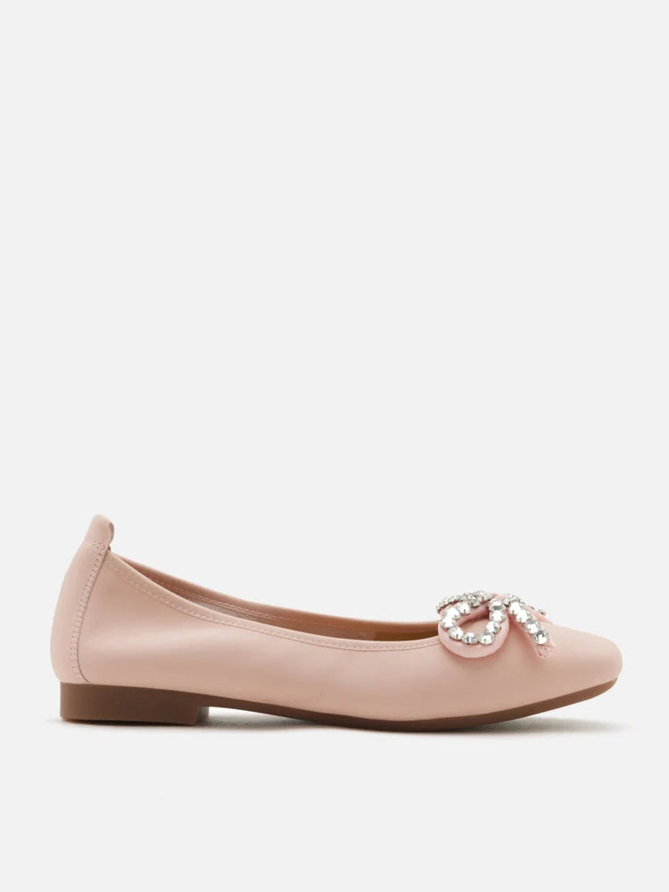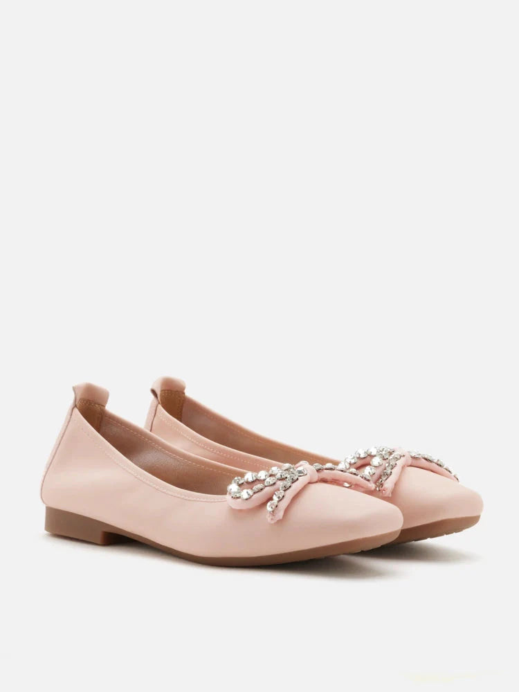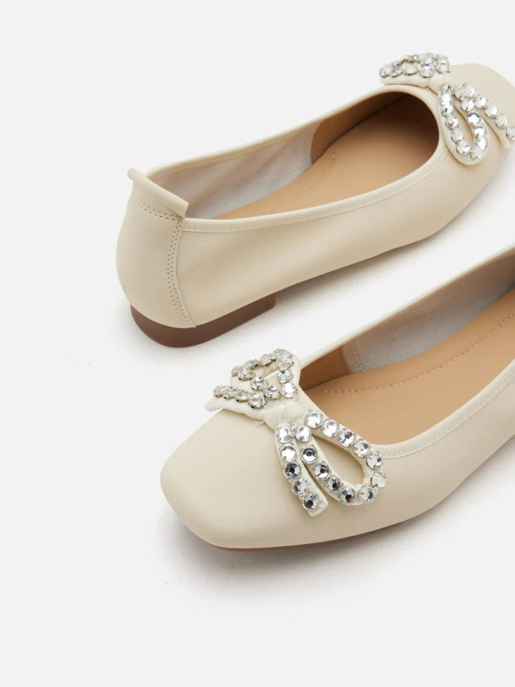 Slip into effortless glamour with the Daphne Diamante Embellished Bow Flats, where elegance and comfort come together in perfect harmony. The standout feature of these flats is the exquisite bow adorned with sparkling diamantes. This eye-catching detail elevates the flats, making them perfect for both casual and semi-formal settings. The ribbon bow is tastefully positioned at the front, adding a glamorous touch that’s sure to turn heads. Whether you're dressing up for a special occasion or adding a bit of shine to your everyday look, these flats make a statement without saying a word.