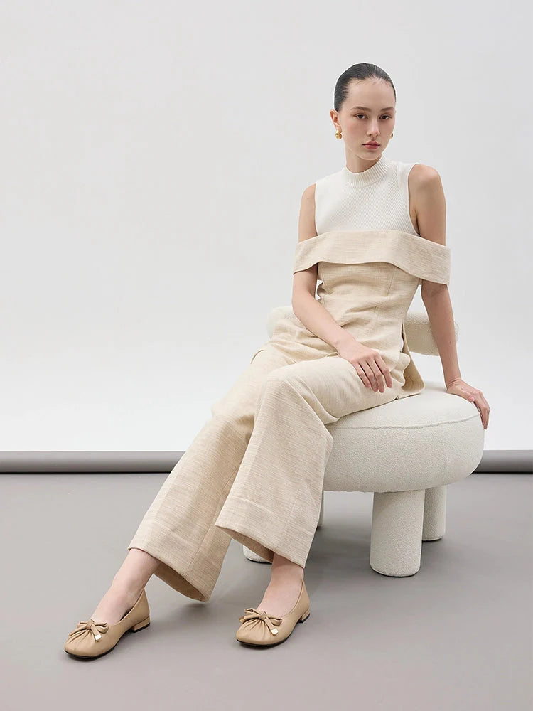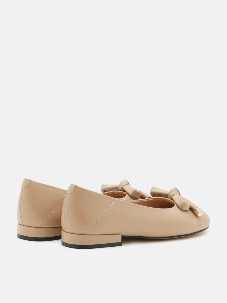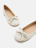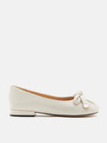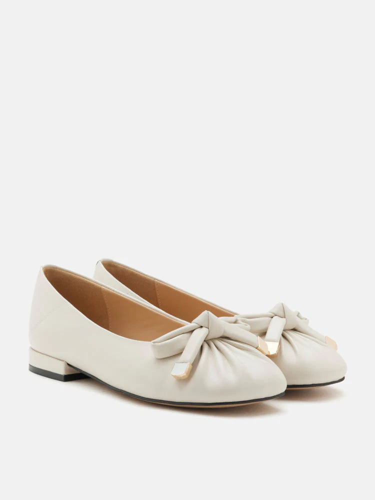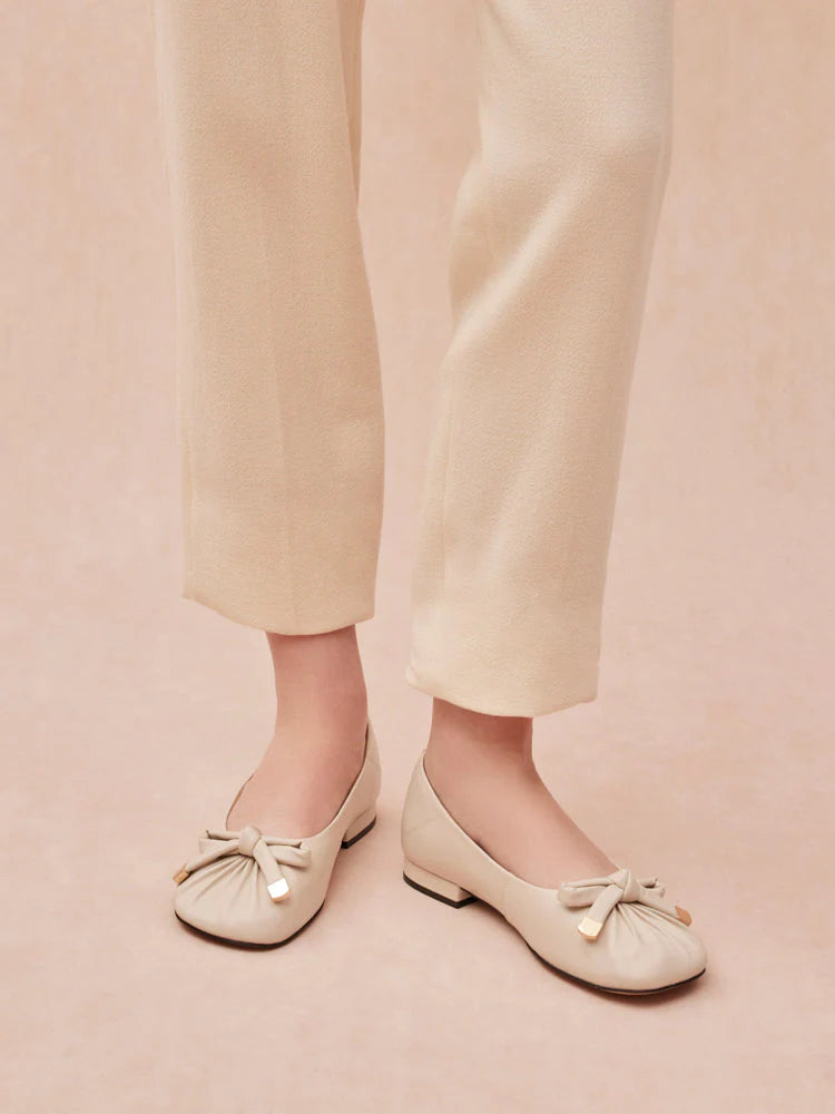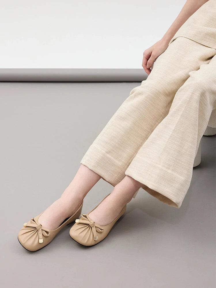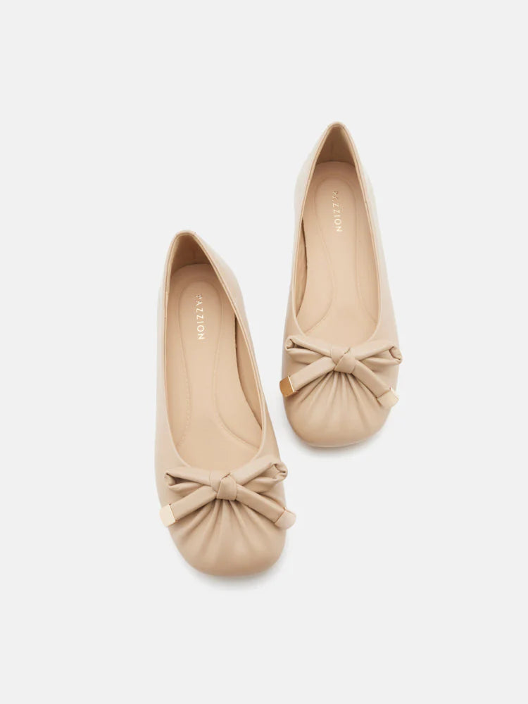 Clarissa exudes effortless elegance with its chic design. The elegant ribbon detail, adorned with stylish metallic ends, catches the light and adds a sophisticated gleam and classic charm. The ruched texture provides a flattering, modern twist, while inside, the thick padded insole and plush pillow cushion at the back keep your feet cozy and supported from morning to night. With Clarissa on your feet, it feels like you're walking on a plush cushion, even during your busiest days.