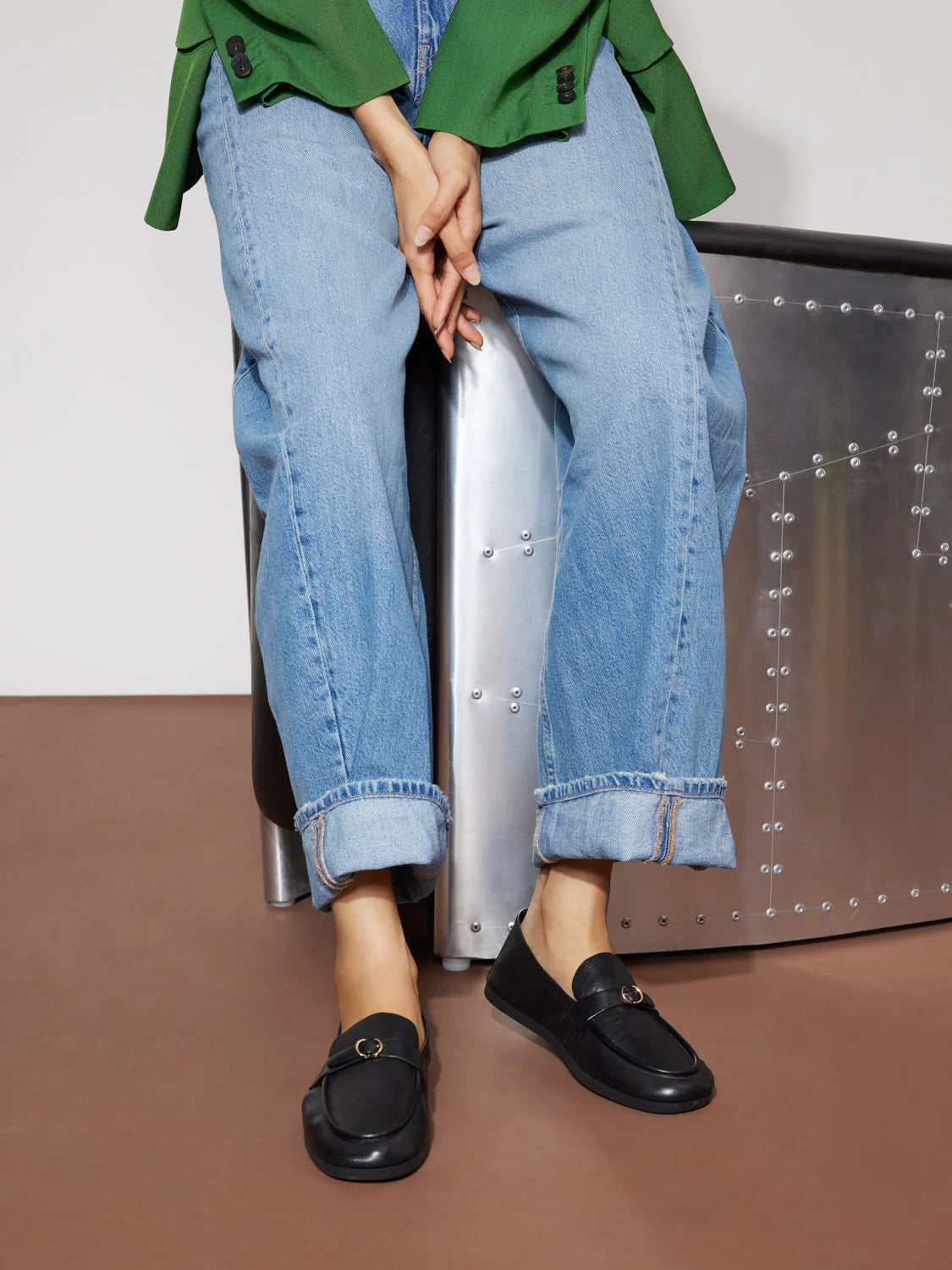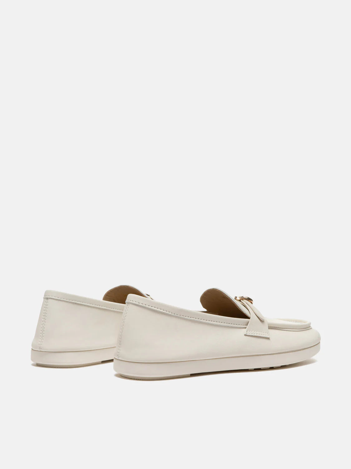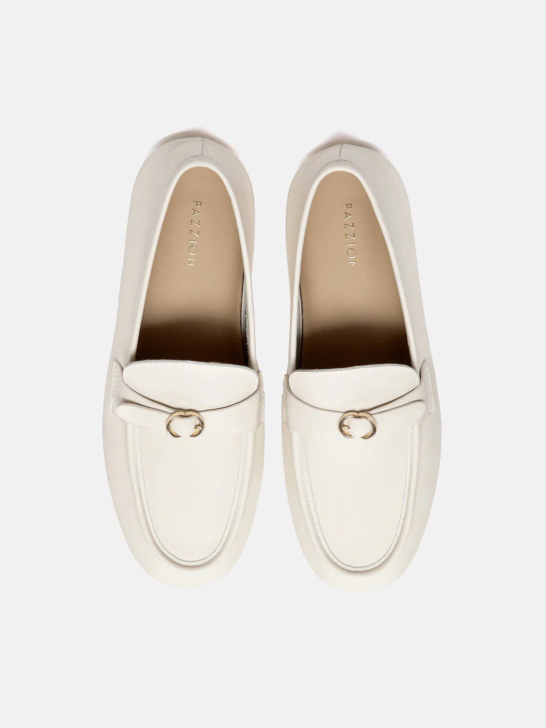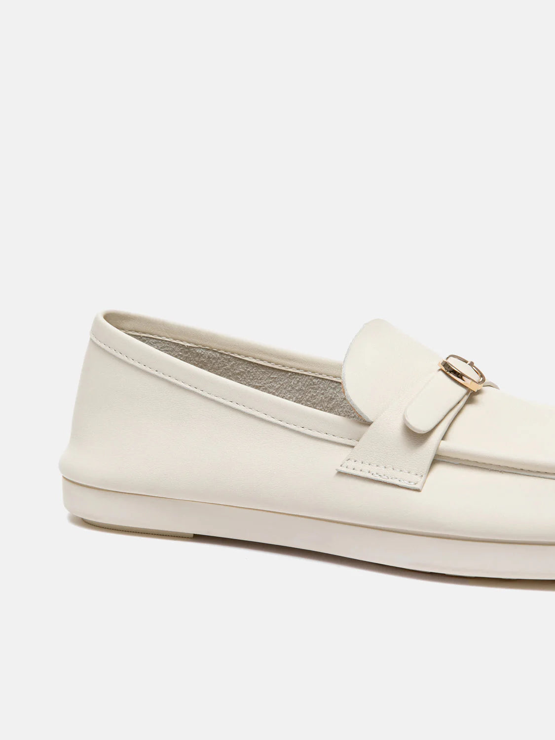 These loafers are made from soft cowhide leather in classic beige and black. A small gold buckle secures the strap, adding a touch of elegance, while the thick padded insole keeps your feet comfortable all day.