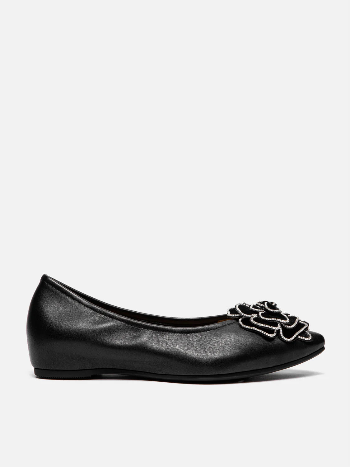 These flat elevates the classic pointed design with a floral detail on the front. Made from soft lambskin, it has a thick padded insole with a slight lift for comfortable all-day wear.