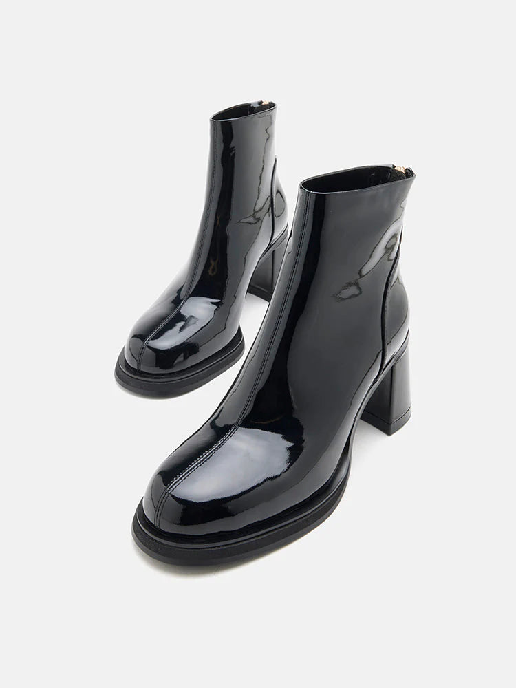 Chantel Patent Leather Back Zip Boots