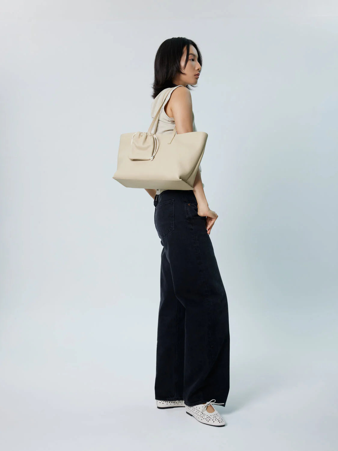 These flats feature a detailed flower pattern laser-cut into soft leather, with a small bow at the center for a feminine touch. The thick padded sole ensures all-day comfort, combining style with everyday wearability.