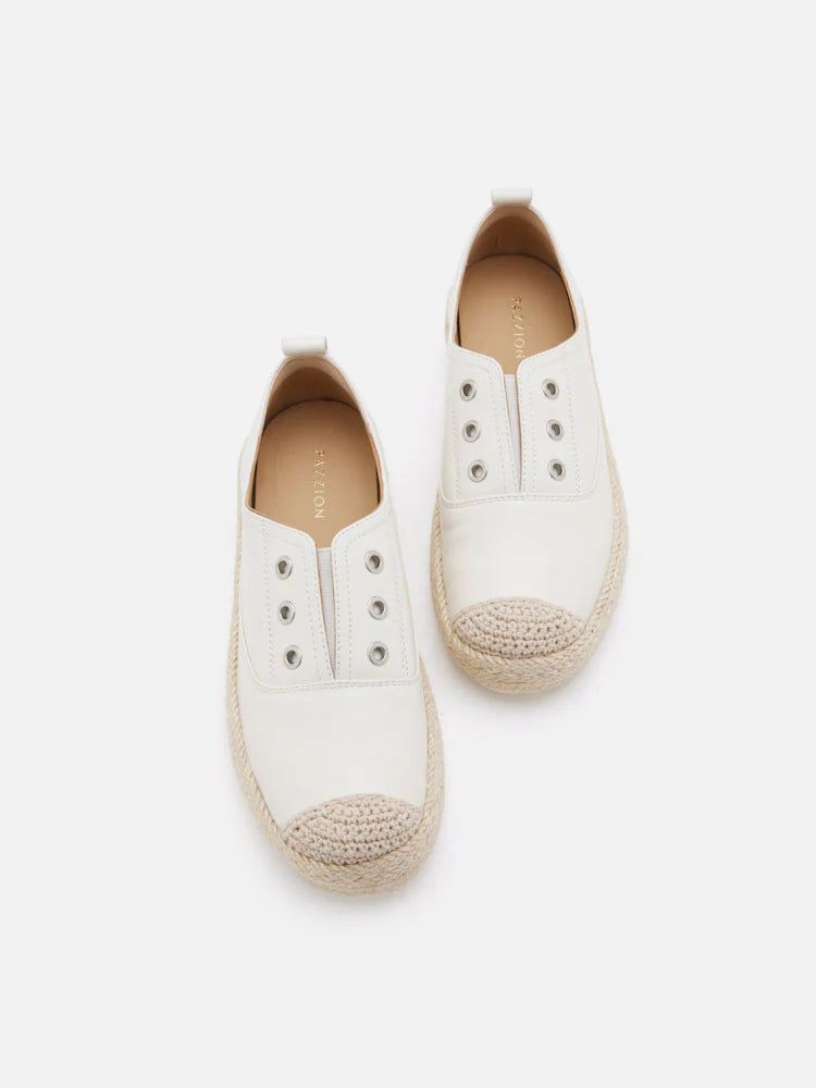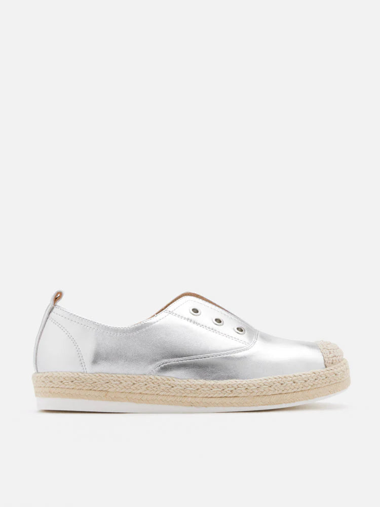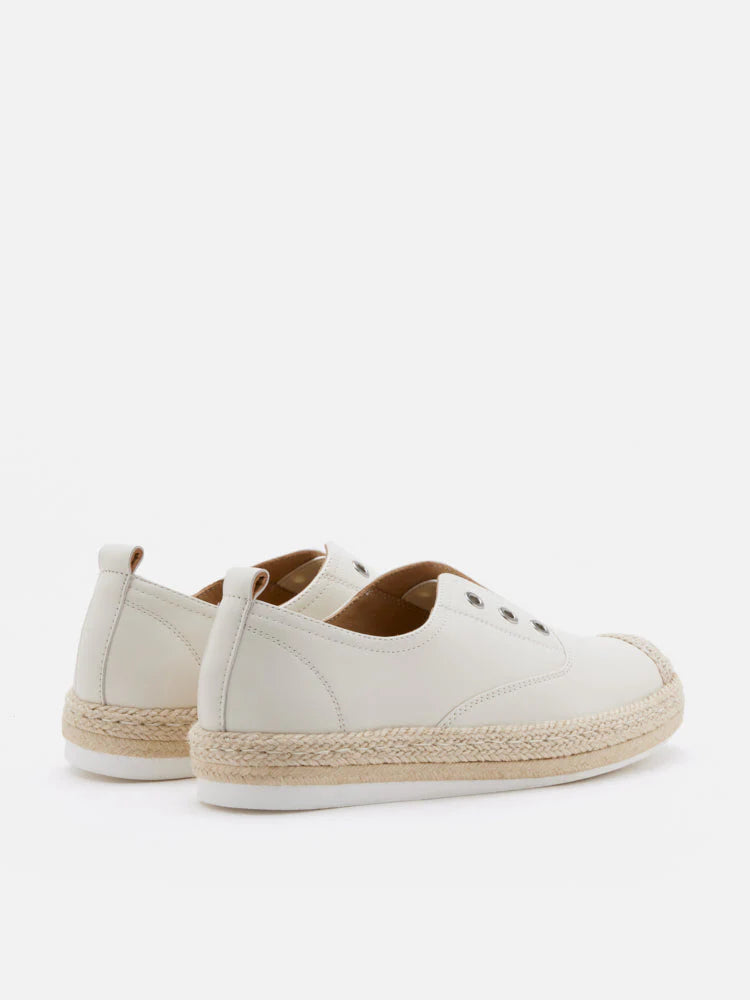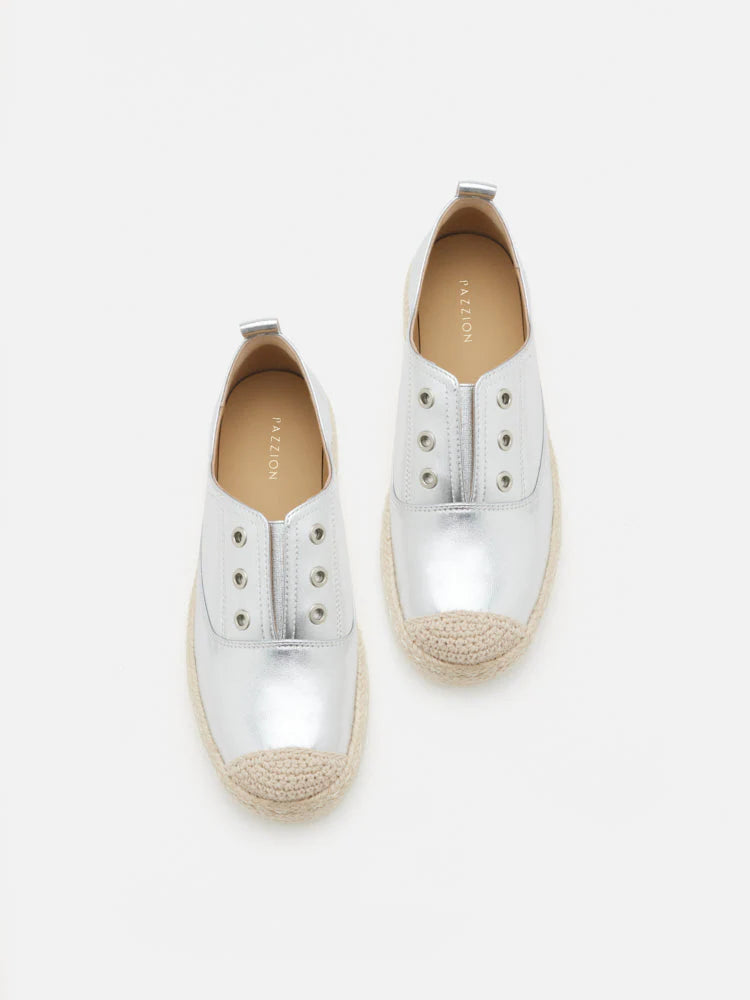 Defined by effortless sophistication, these espadrilles reimagine classic style with contemporary flair. The leather upper is paired with an espadrille bottom and rubber sole for a natural finish, while the polished metal eyelets add a subtle touch of edge. Designed for comfort, a pillow-cushioned back ensures an indulgent fit, marrying ease and elegance in every step.