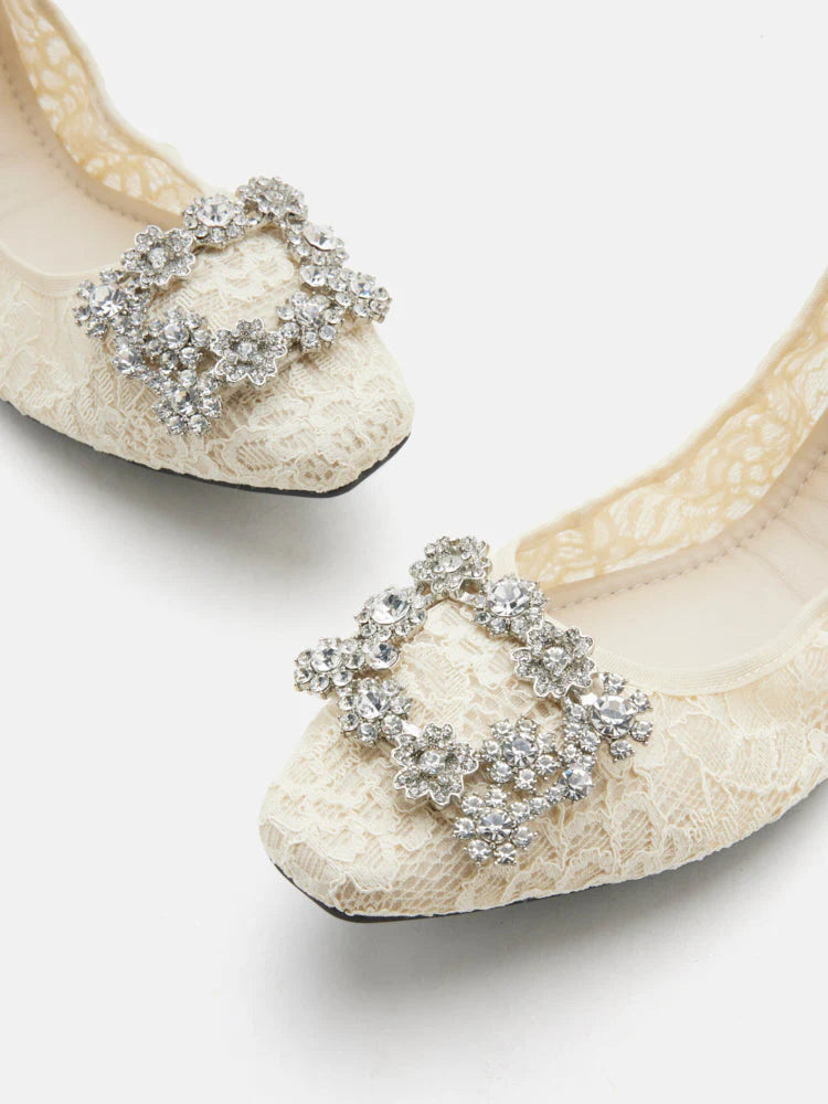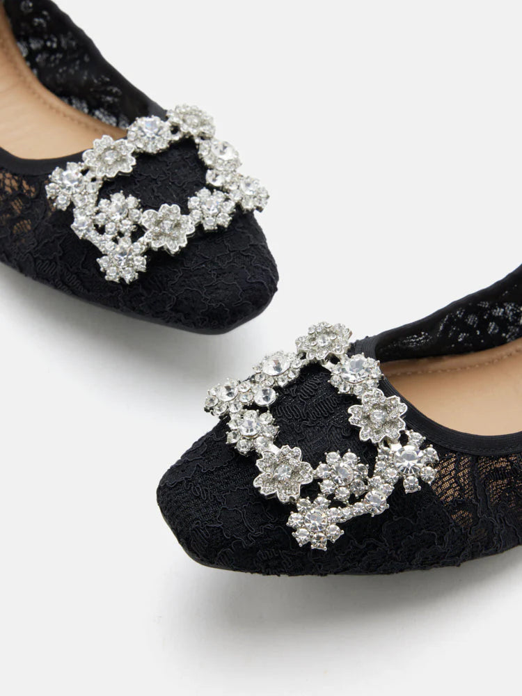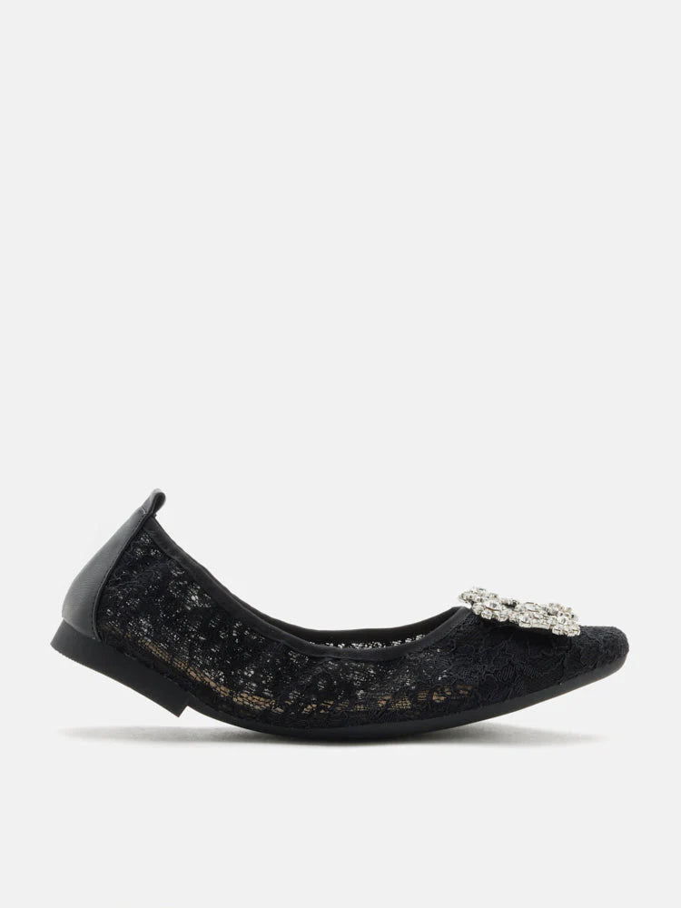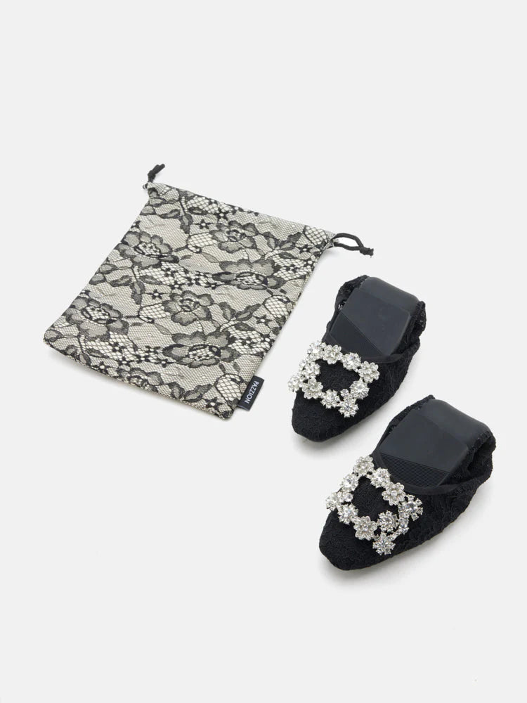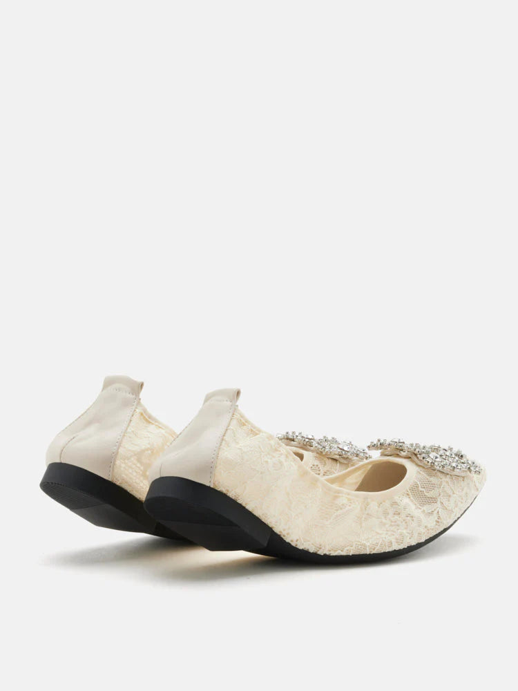 Alina Lace Diamante Foldable Flats