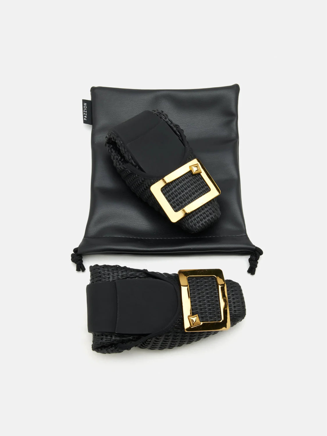 Wren offers a masterful blend of perennial chic and textural intrigue with its woven texture and striking metallic square-shaped decorative buckle. Crafted from microfiber with a lambskin lining and a flexible rubber outsole, these flats provide an effortlessly graceful fit. A versatile choice for those who appreciate quiet luxury with an artistic touch.