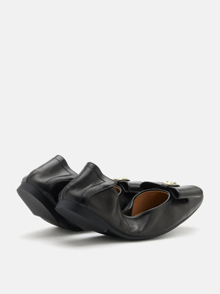 PRODUCT DESCRIPTION Elevate your style with the Madeline Studded Bow Foldable Flats. Featuring a chic bow adorned with eye-catching studded details in the center, these flats effortlessly blend elegance with a touch of edge. The foldable design ensures convenience, allowing you to easily carry them in your bag for on-the-go...