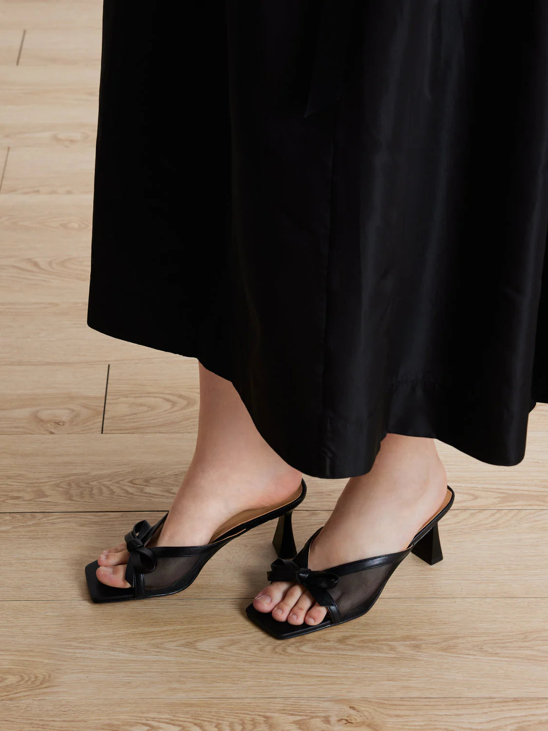 Graceful and refined, these mule heels showcase a delicate bow at the front, complemented by a subtle mesh design on either side that adds an air of lightness and texture. Crafted from supple lambskin and breathable mesh fabric, Ulra embodies understated sophistication, a perfect marriage of timeless femininity and contemporary flair.