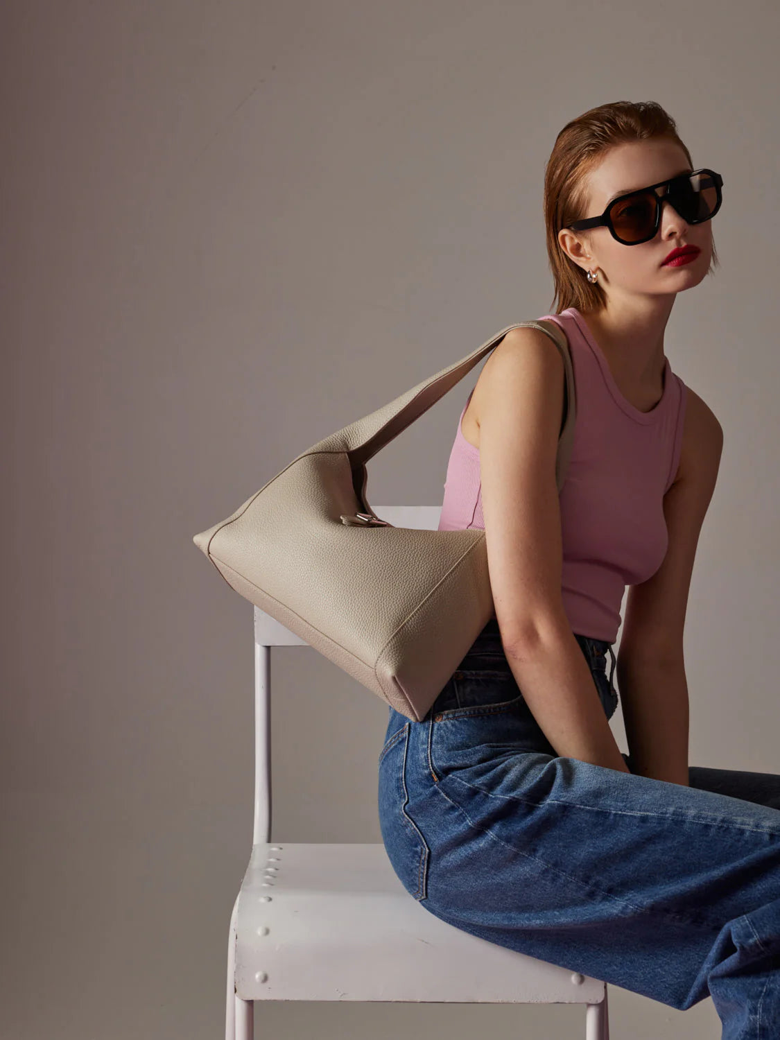 Jarelisse Clasp Buckle Leather Shoulder Bag