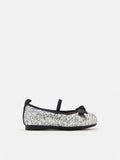 Complete your little one's ensemble with our glitter bow flats. Designed with comfort in mind, these adorable pumps crafted with glitter fabric offer a soft, gentle fit for delicate feet. Available in Silver and Rainbow, they deliver versatile charm, making them perfect for both casual outings and formal occasions.