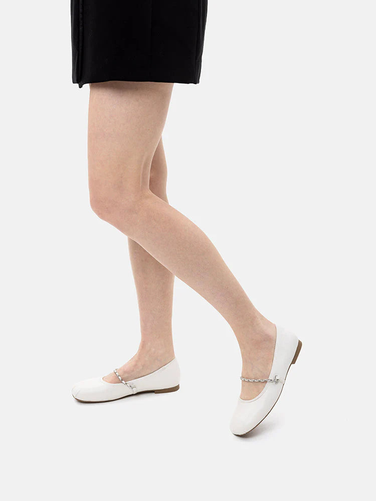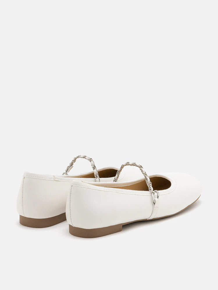 A harmonious blend of timeless allure, modern sophistication with a hint of boldness, Jessie is an embodiment of exquisite style. Adorned with a sleek and graceful chain hardware, these Mary Janes exude an air of refined charm with a blend of edginess, making each stride a bold fashion statement.
